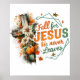 Design cor de cor, empírica, apresentando uma cena de outono/outono com abóboras, cruz de madeira e flores de outono. O texto de inspiração colorido diz: "Cai por Jesus que ele nunca sai". Esse design está disponível em uma grande variedade de produtos.
