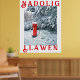 Poster Caixa Postal Vermelho Tradicional e Neve em Árvore