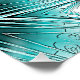 Um design caleidoscópico branco e turquesa impressionante, com padrões geométricos intrincados, linhas vivas e formas semelhantes a estrelas simétricas. Este trabalho de arte abstrato ousado e moderno combina tons legal de gelo com detalhes fractais dinâmicos, criando uma peça visualmente cativante perfeita para decoração doméstica, roupa ou acessórios.