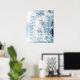 Este calendário apresenta flores de dente de leão em várias fases de floração, num estilo rústico/vintage. As flores são representadas em tons de azul, branco e amarelo sobre um fundo azul claro.