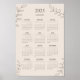 Poster Calendário Anual 2025 Arte em Linha Floral Minimal