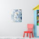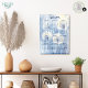 Este calendário apresenta flores de dente-de-leão em diferentes fases de floração, num estilo rústico/vintage. As flores estão representadas em tons de azul, branco e amarelo sobre um fundo azul suave.