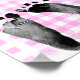 Pegadas pretas de bebê em fundo xadrez branco e rosa para jogo de Baby Shower