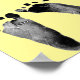 Pegadas pretas de bebê em fundo amarelo para jogo de Baby Shower.
