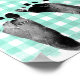 Pegadas pretas de bebê em fundo xadrez branco e verde menta para jogo de Baby Shower