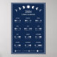 Calendário de Fase Lunar de 2026 Ciclos Lunares Cor Azul Escuro Arte Minimalista Poster