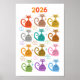 Poster Calendário de Gatos Atômicos Coloridos de Meados d