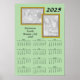 Imagens da sua reunião adornam a parte superior deste calendário de mesa (duas imagens emolduradas). Calendário de 2025 na parte inferior. Personalize o texto para o nome do evento - adicione uma data ou local também! Em fundo verde.