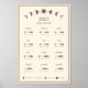 Poster de Calendário de Arte Minimalista de Cor Bege Pastel com Fases Lunares de 2025