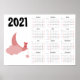 Calendário Ursinho de pelúcia rosa 2021 Cartaz