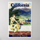 Poster de viagens de ferrovia Vintage promovendo a Califórnia como destino de verão.