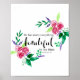 Poster Caligrafia de Bíblia das Flores de Aquarela