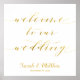 Trocar a caligrafia em ouro, bem-vindo ao nosso sinal de casamento, com os seus nomes na parte inferior