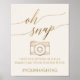 Esta elegante placa de marfim de caligrafia dourada "oh snap" é perfeita para um casamento simples. A design neutra apresenta uma poster minimalista decorada com tipografia falsa de ouro romântica e caprichosa. Personalize a placa com a hashtag de casamento. Nota: Este design não apresenta folha de ouro real. É um gráfico de alta qualidade feito para se parecer com folhas de ouro.