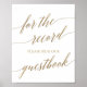 Esta caligrafia em ouro elegante para o sinal de registro é perfeita para um casamento simples ou chá de noiva. O design neutro apresenta um sinal minimalista decorado com tipografia romântica e caprichosa em folha de ouro falsa.