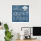 Poster Caligrafia geométrica do mármore azul-romântico ma