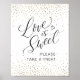 Sinal de amor é doce por favor pegue um tratamento, apresenta caligrafia moderna e fundo de brilho dourado falso, chique e elegante.