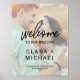 Esta poster de casamento de boas-vindas com uma caligrafia desbotada é perfeita para um casamento moderno. A design apresenta uma tipografia elegante, mas rústica, com sua foto ao fundo. Personalize o poster com o nome da noiva e do noivo, e a data e o local do casamento.
