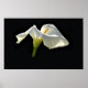 Um lírio branco com fundo preto mostra as pétalas translúcidas.