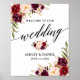 Poster Calliografia Burgundy Floral Weding Bem-vindo