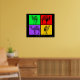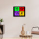 Compre este poster de camelos em cores verde, vermelha, roxa e amarela.
