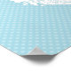 A silhueta rosa de uma bela mulher com um chapéu espantoso, está num quadro branco ornamentado. O fundo é um azul claro e doce, com bolinhas pequenas mais leves.