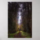 Uma fenda de céu azul leva você para fora da floresta através de uma linha de árvores velhas coppicadas de limões. Fotografia HDR tirada em Finedon, Northamptonshire UK Customize para adicionar seu próprio texto.