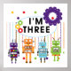 Pôster Camisas de aniversário de 3 anos robô e presentes