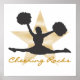 Uma silhueta de uma fêmea de cheerleader com pom sobre uma estrela de ouro de fundo com texto dourado que lê "Rochas de Aplausos" em T-shirts, capuzes, canecas, cartões, adesivos, paus, keepsakes, iPhone e capas de ipad, ímãs e muito mais.