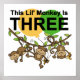Três pequenos macacos balançando de uma árvore em Swinging Monkeys - t-shirts de Aniversário, fatos-chave, canecas, cartões, totes, botões e outros itens para um aniversário de 3 anos de tema macaco que o vosso filho vai amar!