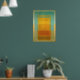 Uma obra de arte abstrata de campo de cor luminosa que apresenta retângulos em camadas de turquesa, amarelo dourado e tons âmbar quentes. Pigmentos translúcidos suaves criam profundidade calma e harmonia cromática, formando uma composição contemporânea minimalista ideal para amantes de design moderno e interiores elegantes.