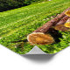Apresentando um campo de madeira, com toros antigos deitados em uma pilha, enfiados em um vale bem ao lado de uma floresta verde brilhante.