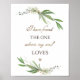 A poster de escritura de casamento inspiracional representa um elegante verde botânico de cor d'água, incluindo simples arranjos florais verdes e dourados. Apresenta a canção Versa Bíblia de Salomão 3:4, "Encontrei a que a minha alma ama."