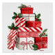 Wall art print featuring a tall stack of red and white Christmas presents tied with candy cane stripes, twine bows, holly leaves, and berries, painted in cozy watercolor style. Perfect Christmas wall decor for living rooms, kitchens, and gift-wrapping corners, or as a fun holiday accent for candy cane lovers.