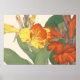 Bonito bloco de madeira japonês de um oleoso amarelo e laranja. O lírio canna não é um lírio e é uma planta tropical