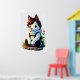 Um Retrato de um desenho legal Cão antropomórfico está sentado ao lado de uma flor. O cachorro está vestindo roupas e tem uma expressão feliz em seu rosto. A flor está em flor de cheio e tem lindas cores. Esta é uma arte gerada por IA.