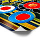 A.I. assistiu a impressão de uma cena vibrante que mostra um cão estilizado e um gato sentado juntos entre uma paisagem surreal e designs florais exagerados, quentes e coloridos vegetais, debaixo de um pôr do sol impressionante com cores ousadas e padrões geométricos.
