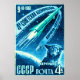 Imagem artística de um foguete e cachorro de um selo de correio soviético usado em 1961, comemorando o voo de um cachorro chamado Chernushka (Blackie) a bordo do Sputnik 9 em 9 de março de 1961.