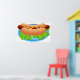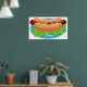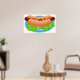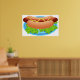 Ilustração de um cachorro-quente saboroso coberto de mostarda e descansando em uma cama de folhas de alface. Imagem disponível em vários presentes e produtos. Posters. Impressões.