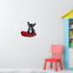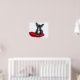 Um filhote de cachorro branco e preto adorável sentou em uma almofada vermelha regal.