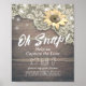 Oh Snap Mídia Social Hashtag | Modelos de Poster de Decoração de Casamento - Renda Vintage, Girassol e Luzes de Corda em Fundo de Madeira Rústica.