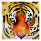 Traga a beleza selvagem para dentro de sua casa com este retrato cativo de uma majestosa tigre. O uso intenso de matizes vibrantes - amarelo, laranja, branco e preto - dá vida ao rosto do tigre. Olhos verdes esmeraldas perfuram através da pintura, capturando o espírito selvagem do tigre. Alguns pedaços de tinta adicionam um toque de talento artístico e originalidade a essa impressionante peça. Esta pintura de aquarela única é um presente perfeito para entusiastas da vida selvagem, amantes da arte, ou qualquer um que aprecie o poder e a beleza da natureza.