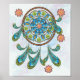 Um belo design de caçador de sonho de turquesa mandala com flores em fundo pastel macio.