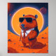 Poster de parede moderna engraçada com uma capybara no planeta marte vestindo um terno e óculos de sol com o sol nas costas. decoração doméstica exclusiva com uma opção de impressão de download digital ou impresso.