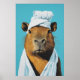 Um retrato charmoso e caprichoso de uma capybara, o maior roedor do mundo, vestida com um traje tipo spa. O animal é enfiado numa toalha branca com outra envolta em torno da cabeça, colocada contra um fundo azul-suave. A expressão calma e serena de capybara dá a impressão de que está a desfrutar de um momento de relaxamento, acrescentando um toque de humor e calor à cena. O trabalho detalhado de bruxaria põe em evidência o pelo de capybara e a textura macia das toalhas, fazer esta trabalho de arte de uma peça deliciosa e leve.