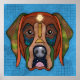 Um único cão louco do Labrador Retriever com padrões abstrato coloridos e ousados em um fundo azul. Popular com amantes de cães e amantes de animais de estimação e amantes de cães de resgate.