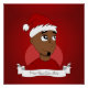 Desenho personalizado com uma ilustração de homem afro-americano feliz sorrindo com chapéu de Papai Noel; com modelo de texto editável, desenho de Natal com fundo vermelho, por Radka Kavalcova