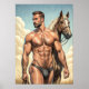 Homem de cervejas extremamente quente com um cavalo, ele tem um corpo muscular e um rosto bonito, ele é perfeito demais.