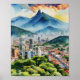 Este impressão de arte apresenta um retrato de aquarela de Caracas, Venezuela.