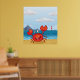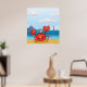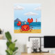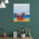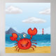 Um caranguejo vermelho feliz na costa. Esta design parece realmente eficaz nestes Poster